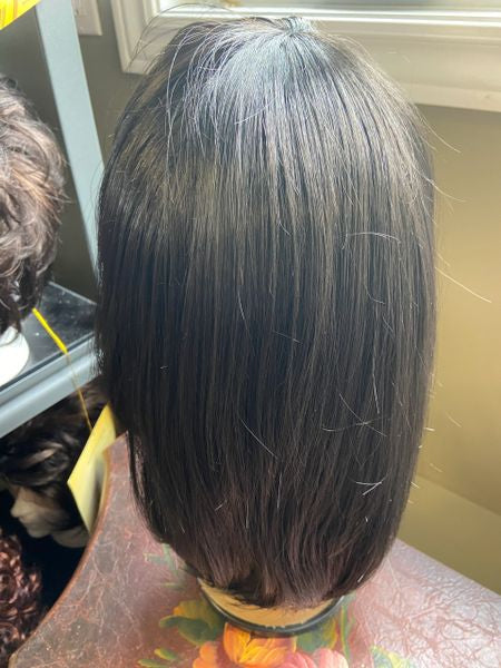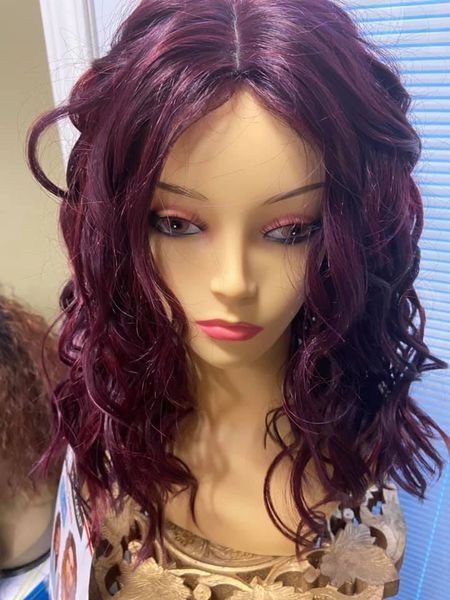 Abigail- black with burgundy highlights, medium-length synthetic wig