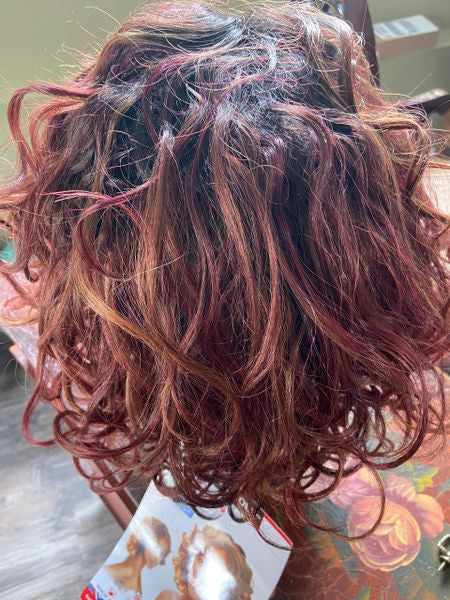 Wish-burgundy and copper blend medium-length with voluminous curls heat resistant synthetic wig